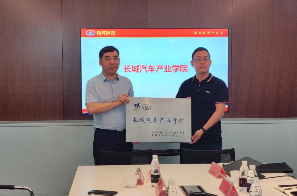 长城汽车产业学院的成立标志着校企合作跃上新台阶,双方将努力构建深度融合的校企命运共同体,共同育人协同创新,为企业转型升级、领跑新赛道提供高层次技术技能人才支撑。