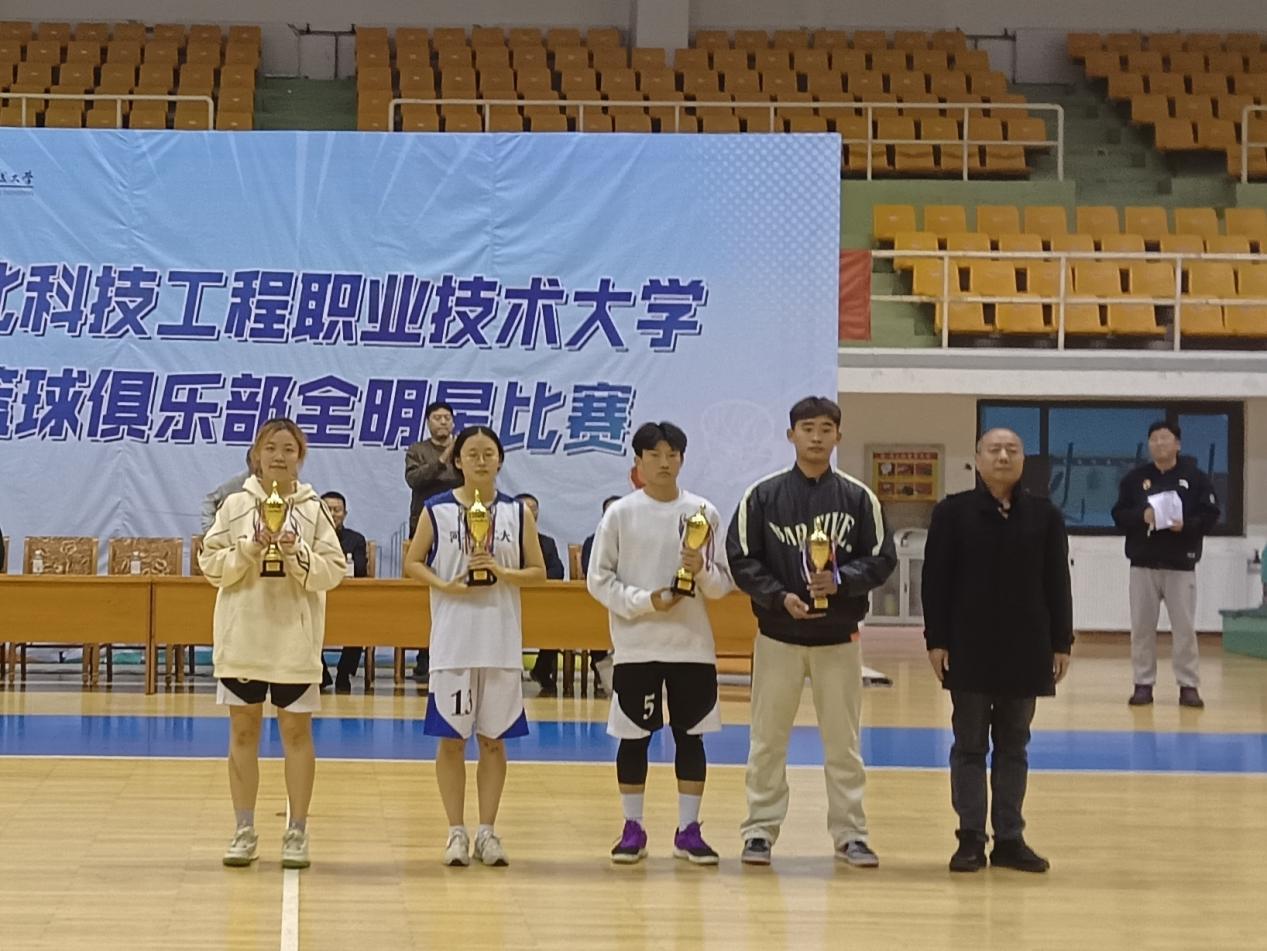 我系队员在比赛中表现突出,男篮比赛中,队员们斗志顽强,球技精湛。他们积极进攻,凭借犀利的突破与精准的三分球迅速确立优势。每一次传球都默契满满,每一次防守都坚韧不拔。速度与力量交织,战术与配合共舞,共同书写了一场精彩绝伦的赛事;女篮姑娘们同样表现非凡,赛场上英姿飒爽。她们以出色的团队协作和顽强的拼搏精神,赢得观众阵阵掌声。无论是快攻还是阵地战,女篮队员们都能以灵活多变的战术从容应对。最终,我系代表队斩获西区男子第一名、女子第二名的骄人成绩。