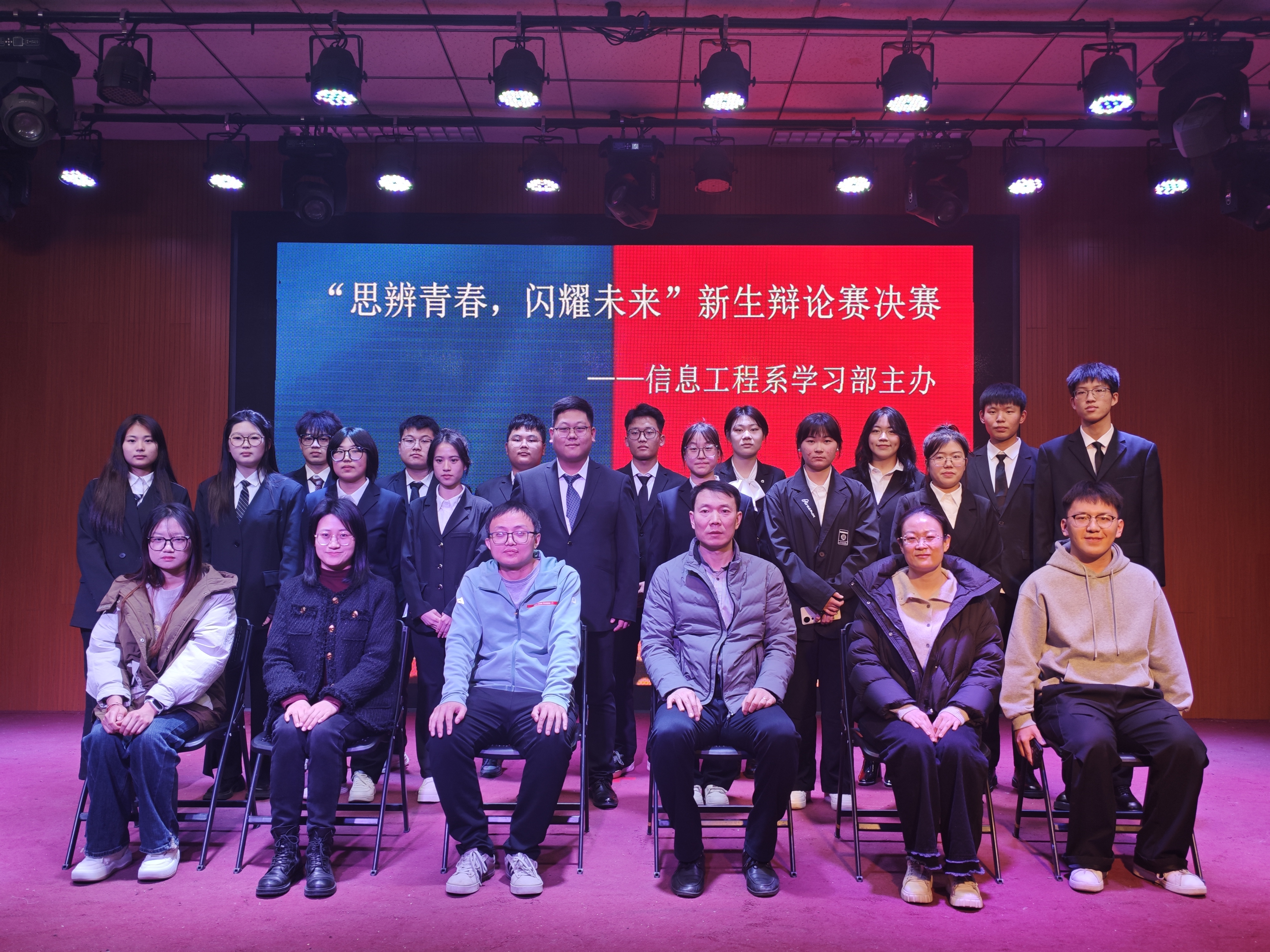 为了锻炼学生的逻辑推理、语言表达等能力,促进不同观点的交流碰撞与学习,培养团队协作能力,同时丰富校园文化生活。我系举办了“思辨青春,闪耀未来”新生辩论赛。于12月4日在大学生活动中心举办新生辩论赛决赛。系学生科科长孙新博,辅导员侯建、张玉丹、钱伟老师以及学生会主要干部出席并担任评委,部分新生到场观看比赛。