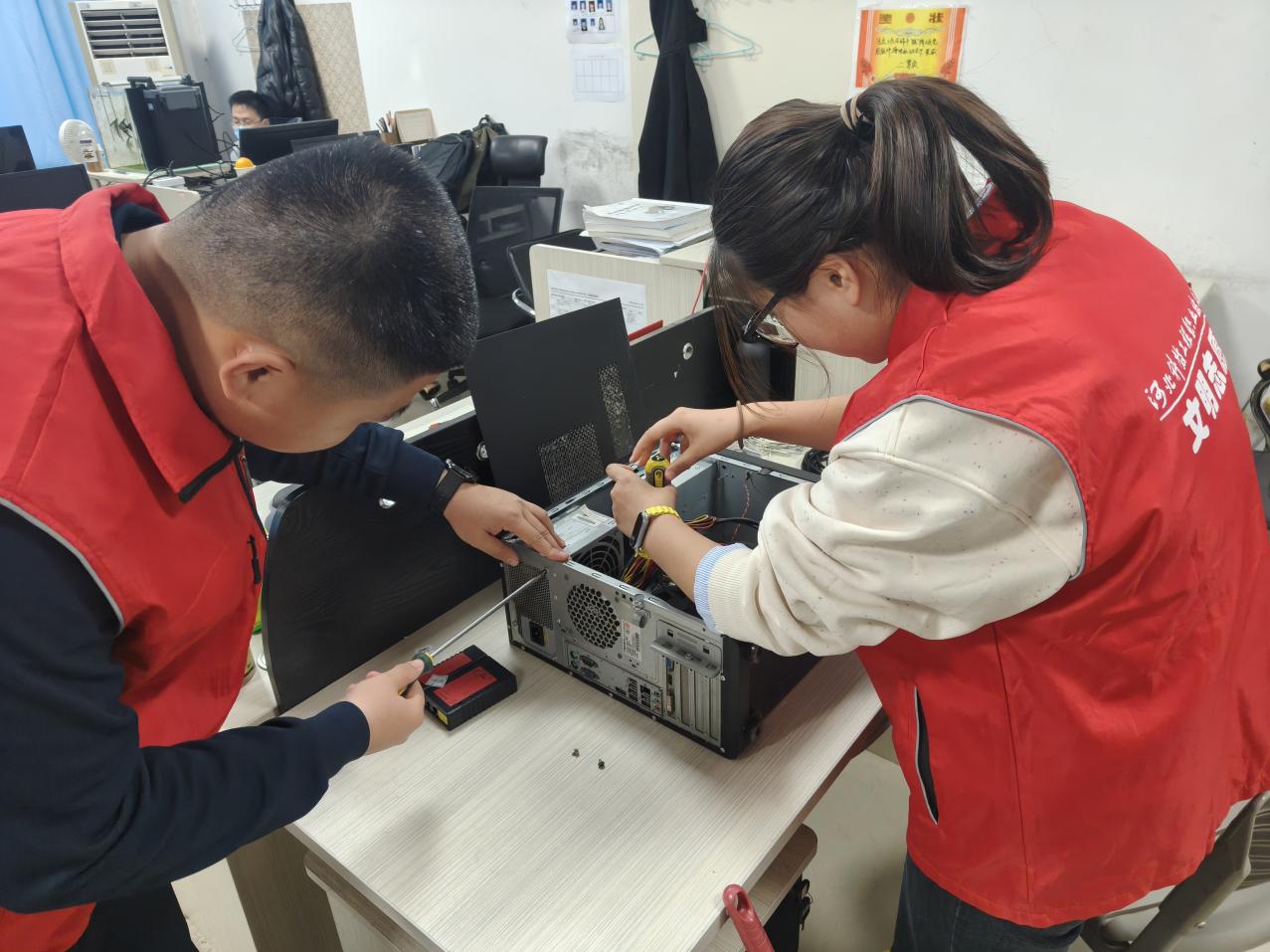此次机房焕新活动,不仅让教学环境得到改善,更让志愿者们在实践中深化了专业认知,将理论与实践生动结合。未来,我院将持续开展校园服务类志愿活动,鼓励更多同学参与到校园建设中,用点滴行动汇聚成守护校园的强大力量,让文明之风浸润校园的每一个角落。