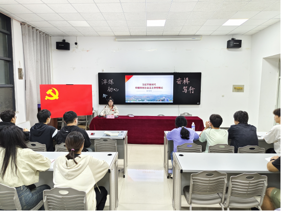 9月27日晚,系学生党支部青年委员高珊,就“习近平新时代中国特色社会主义思想”为题作了专题党课。她从形成的时代背景、核心内容、重大意义三个方面,对习近平新时代中国特色社会主义思想作了详细解读,鼓励同学们一定要树立远大理想,在奋发有为的新征程中谱写青春新篇章。