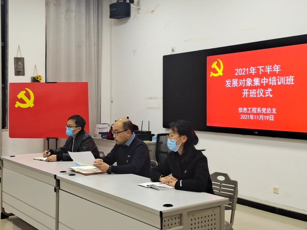 11月19日,培训班开班仪式在系会议室举行。系党总支副书记武立博作了开班动员讲话,明确了举办培训班的目的意义、学习内容与学习要求,对参加培训的党员发展对象提出了三点希望:一要传承初心使命,树立高尚情怀;二要严守培训纪律,确保学习实效;三要对照党员标准,持续提高党性修养,争取早日入党。