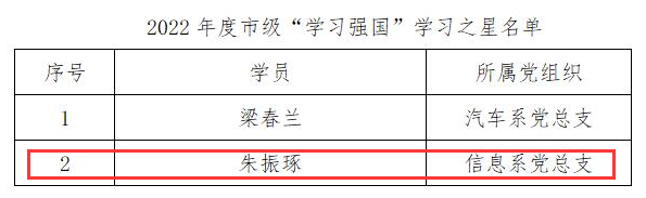 “学习强国”学习平台是中宣部主办的立足全党、面向全社会的科学理论学习阵地和思想文化聚合平台。经各地各单位逐级推荐、业务部门审核把关,我系朱振琢老师被邢台市授予2022年度“学习强国”学习之星荣誉称号。同时,学校综合全校“学习强国”学习平台学员参与度、活跃度和学习积分等相关情况,授予我系党总支副书记武立博、2020级学生张钰佳2022年度校级“学习强国”学习之星荣誉称号。