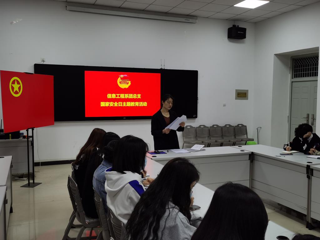 今年4月15日是第六个全民国家安全教育日。为增强广大青年学生的国家安全意识,为庆祝建党100周年营造良好氛围,按照学院团委要求,我系团总支于4月13日开展了国家安全教育日主题团日活动,活动由系团总支书记马晓利主持。2019级、2020级各团支部书记参加了活动。