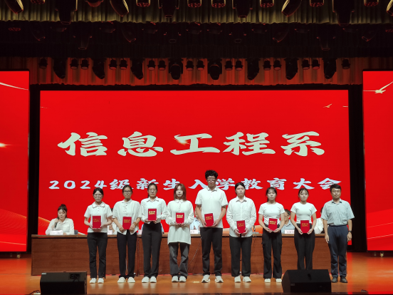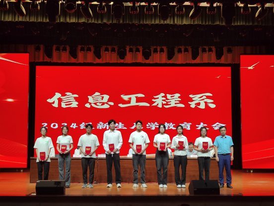 系主任冯磊分别从师资力量、科研成果、系部发展等方面进行了详细的介绍,同时寄语同学们:首先,要树立人生目标,脚踏实地,规划人生,勇于挑战,超越自我;其次,认真学习,拓宽视野,勇于创新,勇于探索;再次,积极参与社会实践,锻炼自我,提升自我。希望同学们肩负起用科技助力经济发展的重大任务,积极实践,以全新的姿态、饱满的精神为信息工程系发展助力。并祝愿同学们在信息工程系这片沃土上茁壮成长,梦想成真。