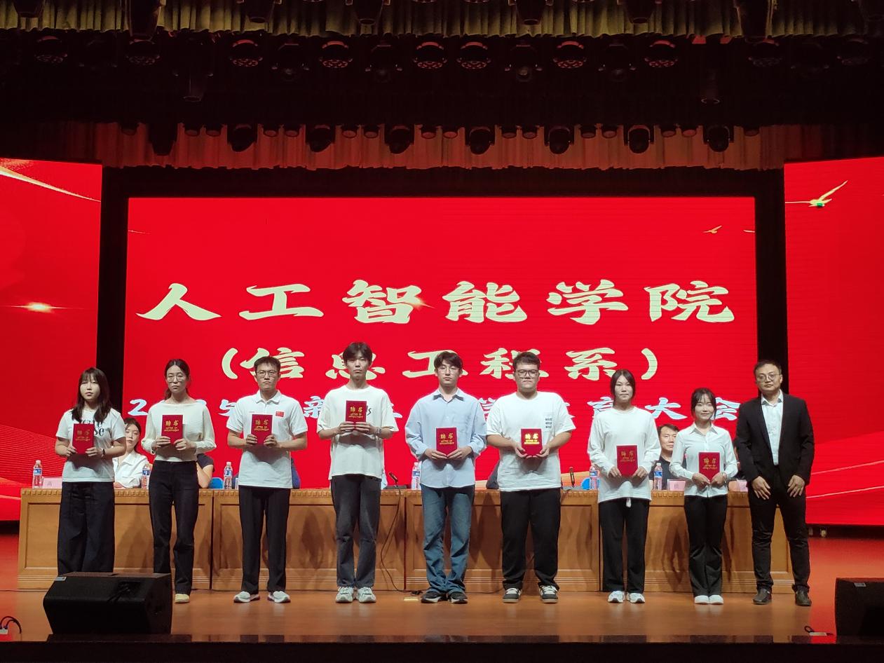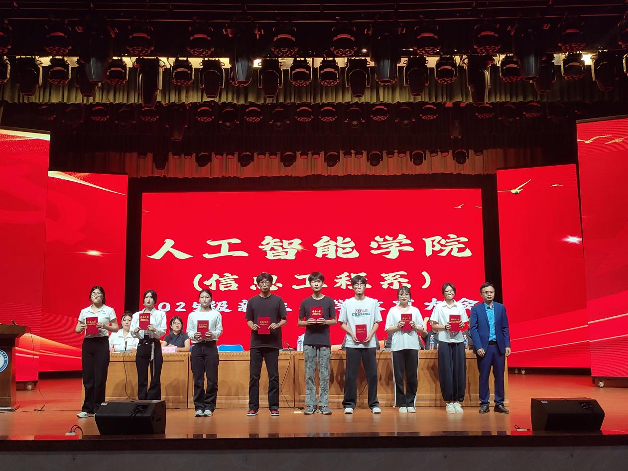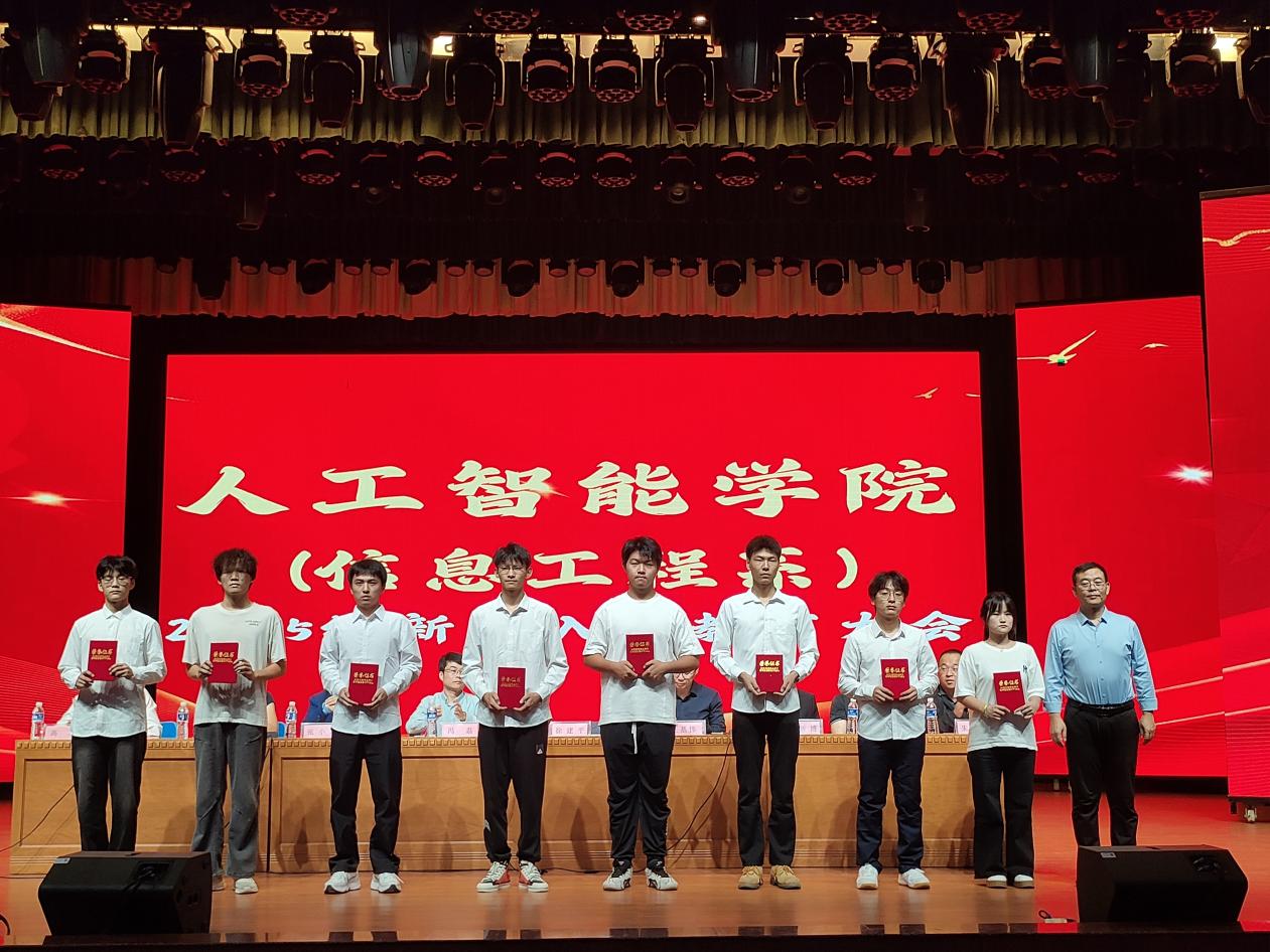 表彰过后,由老生代表智能2401班唐世清和新生代表信息安全与管理2503班王译上台发言,他们表示会恪守“徳能并蓄,敏行担当”的校训,始终秉持“生命不息,奋斗不止”的人生态度,在科工大美丽校园绽放光彩,书写自己的精彩人生新篇章。