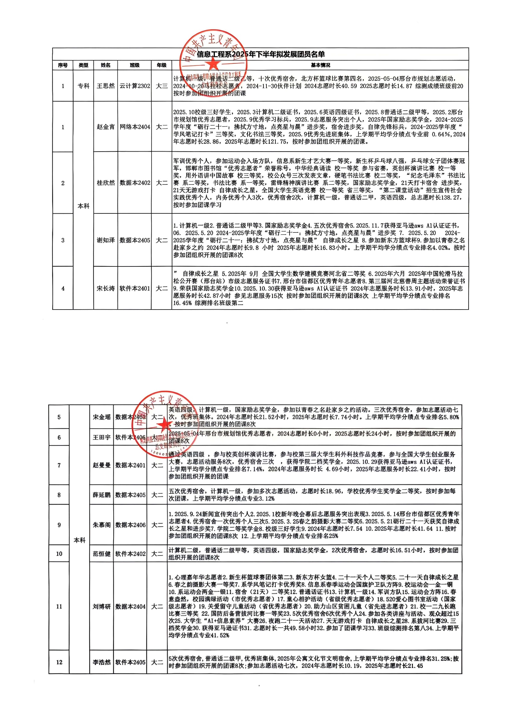 经团群组织推优,信息工程系系团总支研究,王思然等15名同学拟确定为团员,现予以公示。