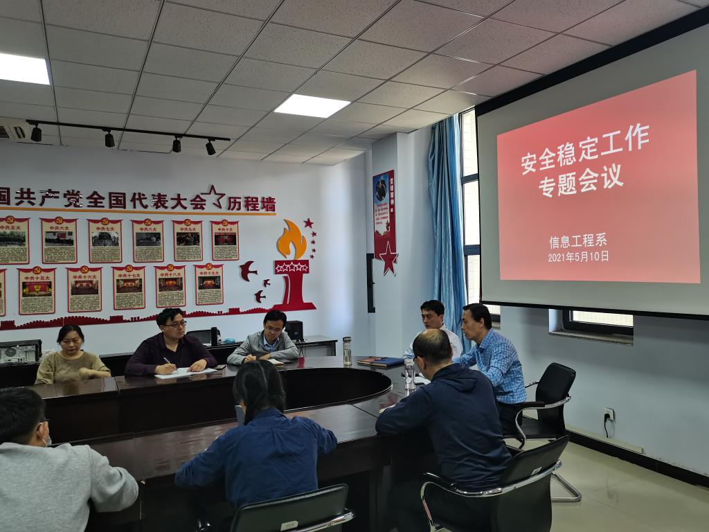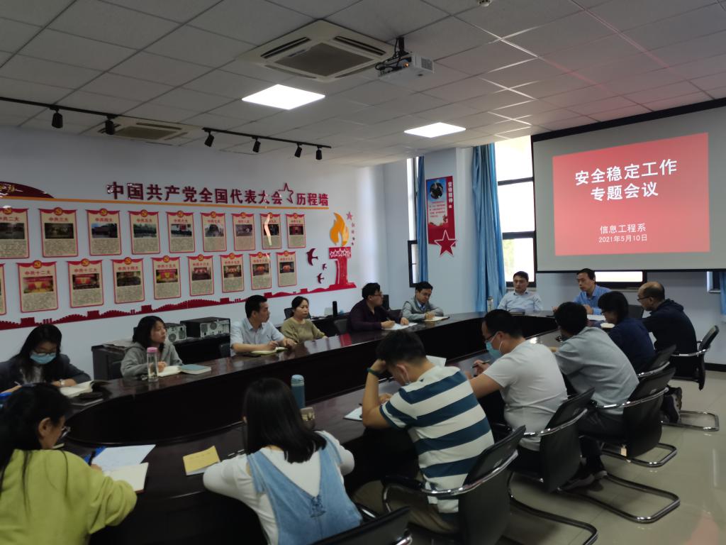 5月10日下午,我系在系党员活动室召开了安全稳定工作专题会议。系党政领导班子、各教研室负责人、教务干事及全体辅导员参加了会议,会议由系党总支书记黄小林主持。