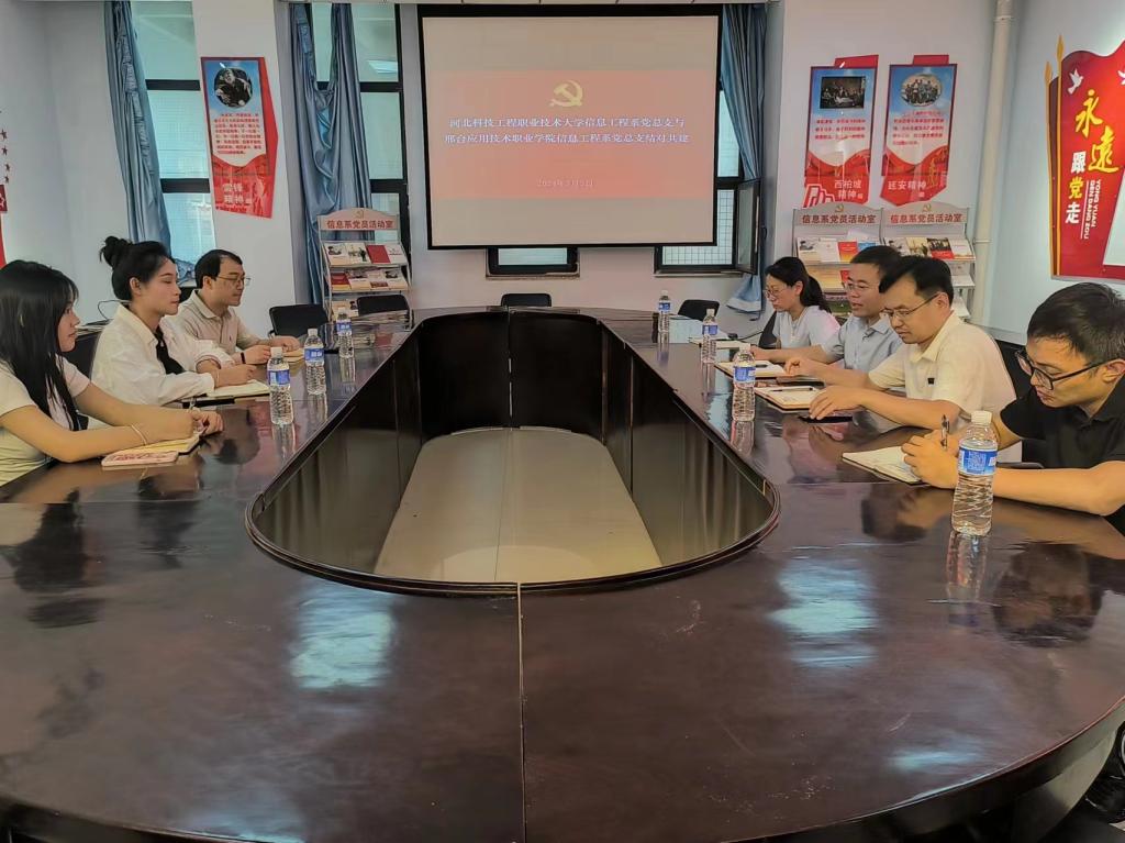 徐建平书记对邢台应用技术职业学院信息技术学院一行的到来表示热烈欢迎,并详细介绍了系部发展历程和党建工作情况。座谈会上双方就党组织建设、党建引领等方面开展探讨交流,建立联系。