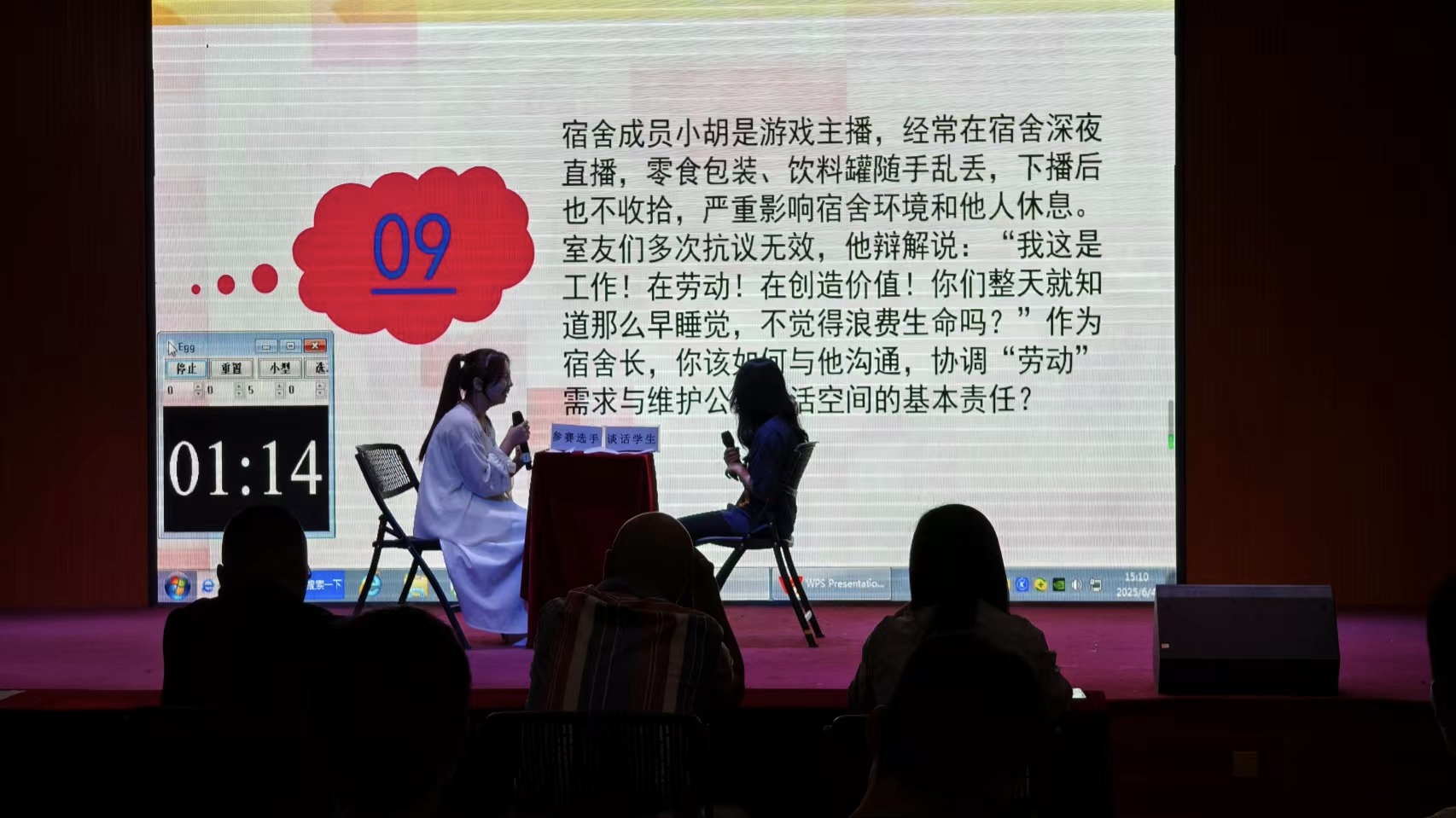 劳动教育谈心谈话环节,我院选手幽默风趣,营造出轻松和谐的沟通氛围,带着问题和建议开展谈话,增强说服力,引导同学思考;军被整理及衣物收纳赛场上,参赛同学以利落的动作、细致的手法,将原本松散的被子变得方正有型,棱角分明,宛如一块块“豆腐块”,衣物摆放得整齐划一,彰显出良好的生活素养;纸壳手工制作中,同学们以纸壳为媒,用双手复刻天安门的庄严与宏伟,以丙烯颜料精心上色,让朱红城墙、金色国徽跃然眼前,尽显大国风范;软绳梯制作场地里,三名选手默契配合,长绳在他们手中穿梭翻飞,快速地形成一个个牢固的绳结,结束时还不忘仔细检查每一个绳结,确保质量;饺子制作区域则充满了浓浓的生活气息,五名参赛选手分工协作,动作麻利,不一会儿,饺子盘里就摆满了一个个饱满可爱的饺子,这一项目不仅让同学们在实践中传承传统美食,更让同学们亲身体悟到劳动的价值。