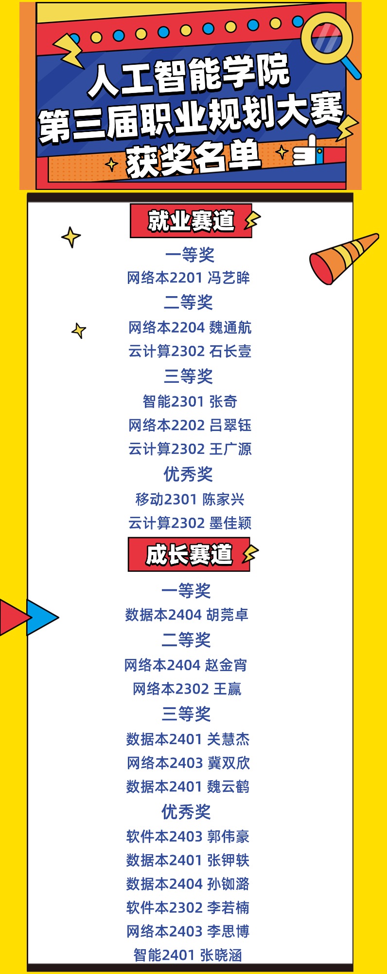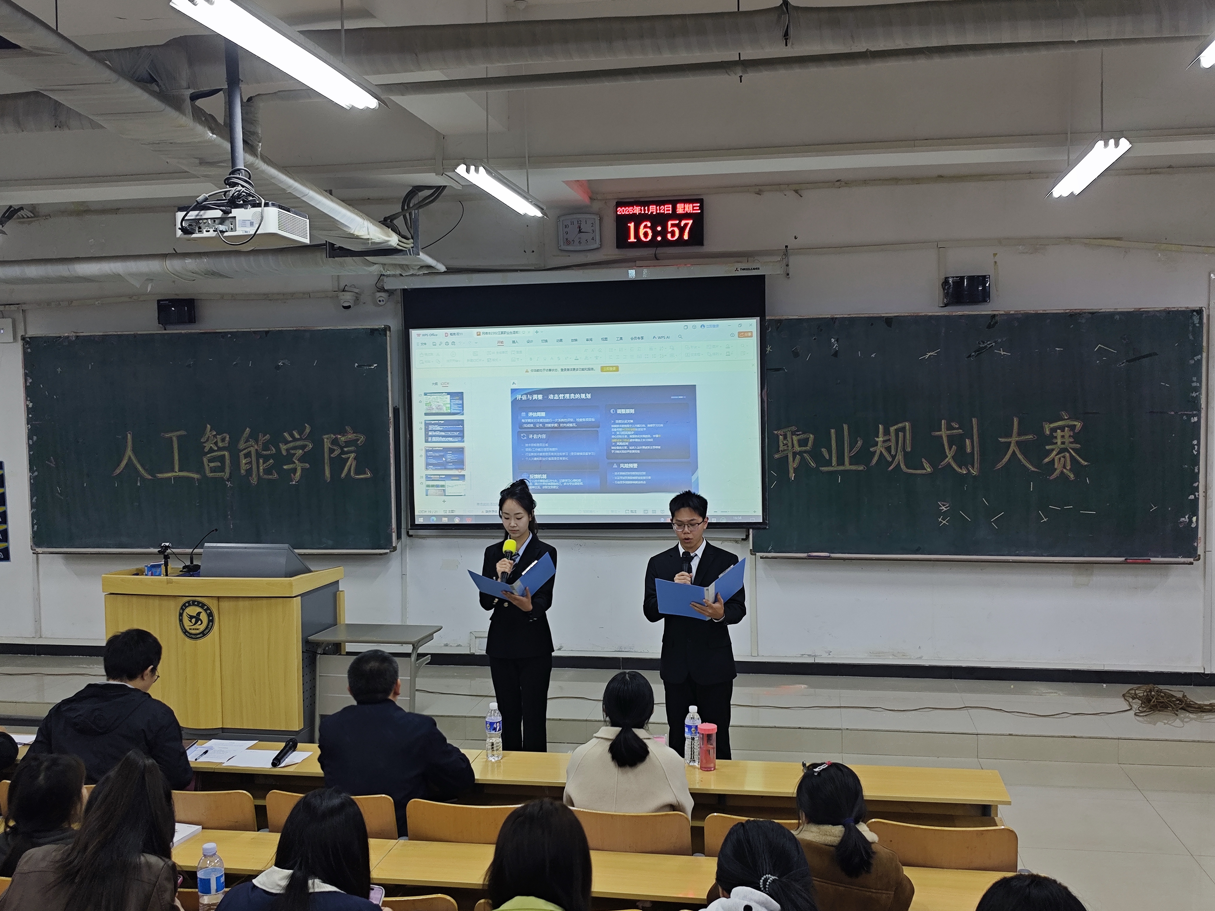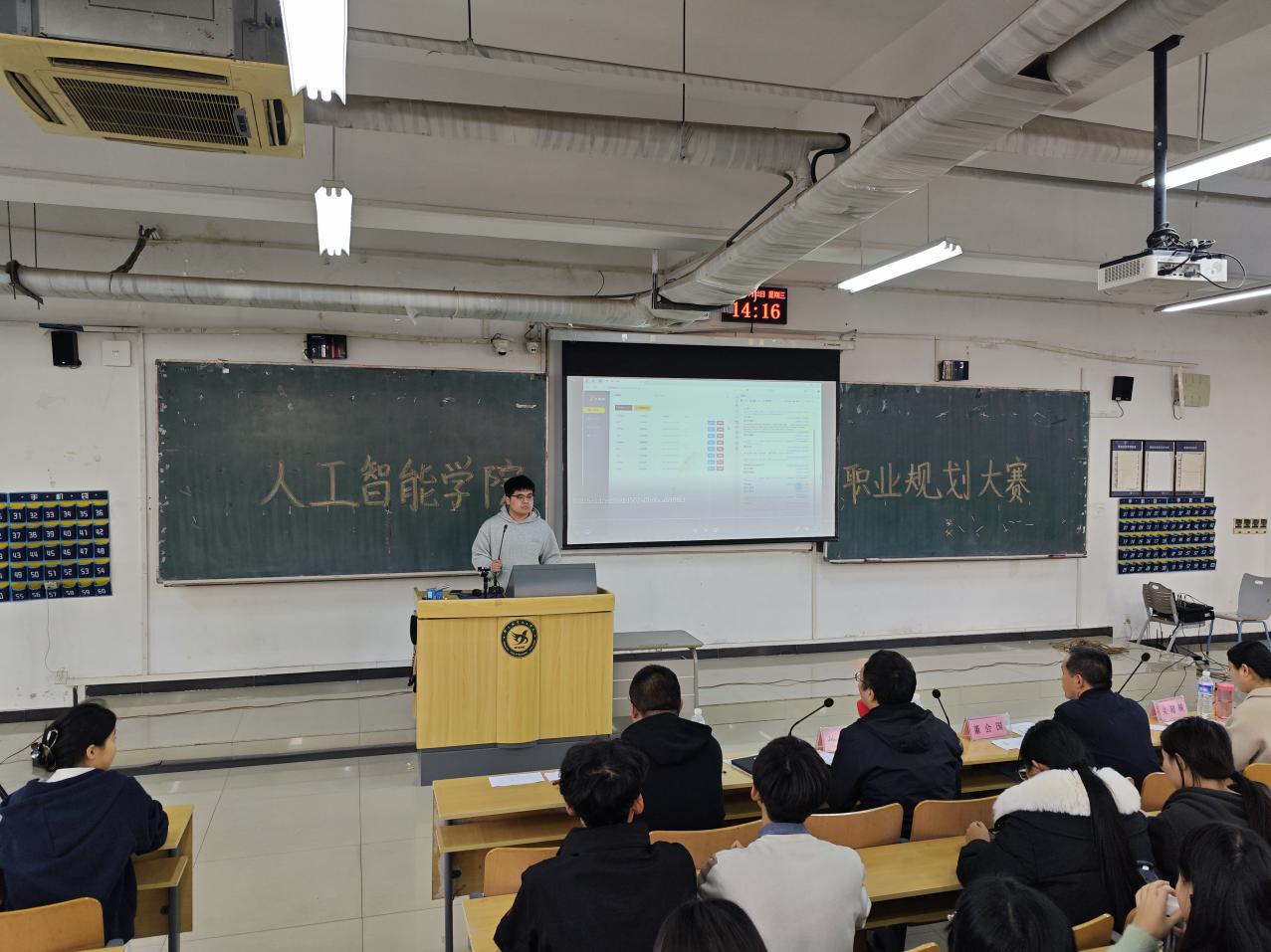 青春无界,规划先行!为引导学生树立正确的成才观、就业观和职业规划意识,提升综合竞争力,明确职业方向,2025年11月12日下午,人工智能学院在西区c2-1举办了“以规划定方向,用竞赛展才华”职业规划大赛。学生科科长孙新博老师、招就处杨靑辉老师、网络教研室董会国老师,大数据教研室吴超楠老师和25级辅导员朱振琢老师出席并指导,为选手指引了职业规划的方向。