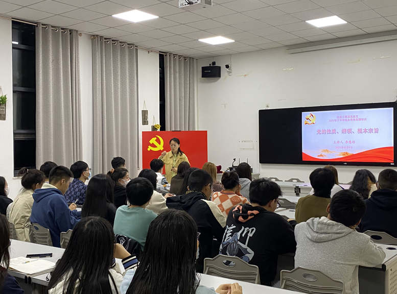 为进一步做好青年学生入党积极分子的教育培养工作,按照学校统一安排,我系党总支精心准备,于10月4日至11日举办了2021年下半年入党积极分子业余党校培训班,对我系74名入党积极分子开展了为期8天的培训。培训通过专题党课、集中学习、分散自学、社会实践活动、撰写心得体会等多种方式进行。