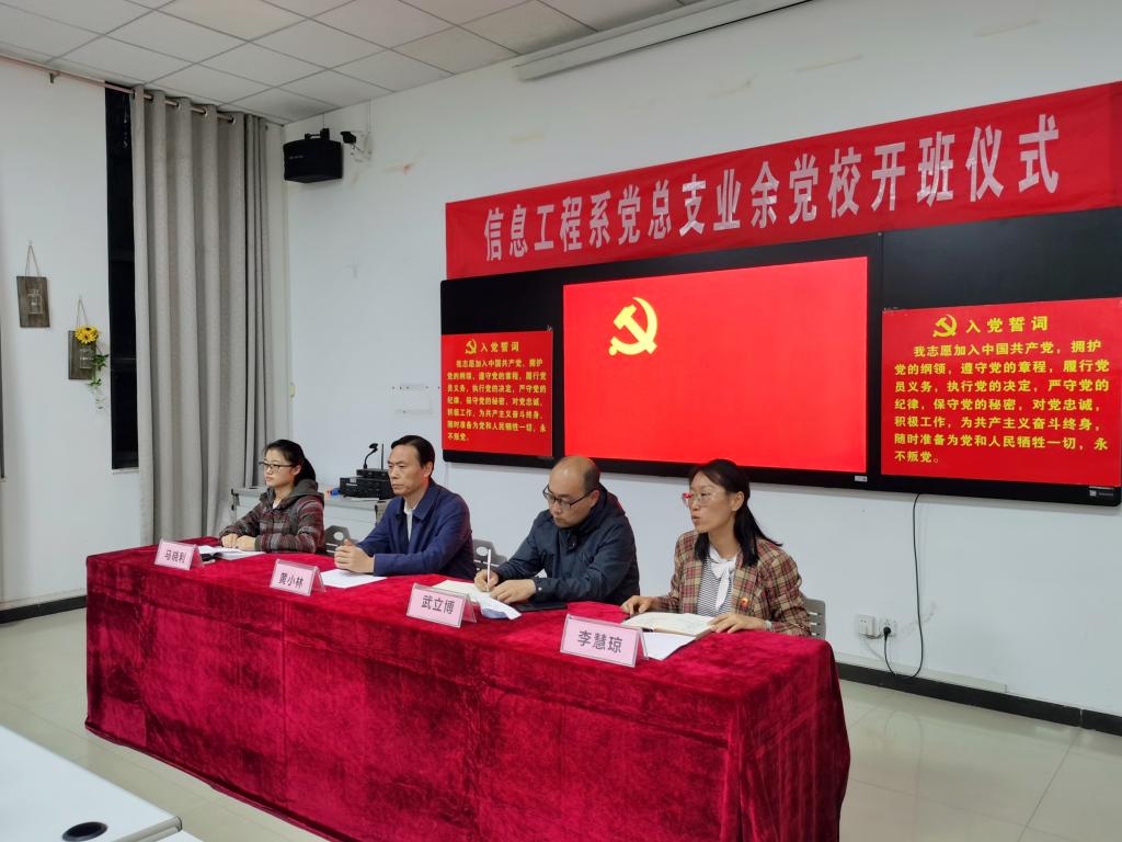 10月4日下午,我系党总支在系会议室举行了培训班开班仪式,系党总支书记黄小林、系党总支副书记武立博、系学生党支部书记李慧琼、系团总支书记马晓利出席了仪式。黄小林书记作了学习动员,并对培训班学员提出了要求和希望:一是要求学员通过培训全面、系统地掌握党的基本知识,确立为共产事业奋斗终身的信念;二是要求学员对照党员标准,严格要求自己,以实际行动争取早日加入中国共产党;三是希望同学们在学习、生活中发挥示范引领作用,做努力学习的模范、遵守纪律的模范、文明礼貌的模范、服务奉献的模范。学生党支部书记李慧琼老师就培训班的学习计划和学习要求做了具体说明。