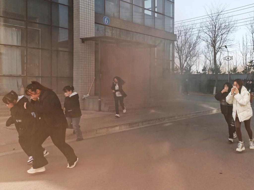 为落实好演练,学校制定了详细的消防疏散方案,对各班疏散路线、各层楼梯口老师安排等内容都作了明细规定。警铃拉响后,全体女生在老师及相关工作人员的指导下,用湿毛巾捂嘴,小步快走,有条不紊地撤离“火灾现场”,迅速来到安全地带。演习结束后,徐建平书记对演习进行了点评,他表示学校和我系始终将师生安全放在心上,他强调校园消防安全工作是学习工作的基础,同学们应主动学习消防知识,掌握必要的灭火逃生技能,共同建设平安校园。
