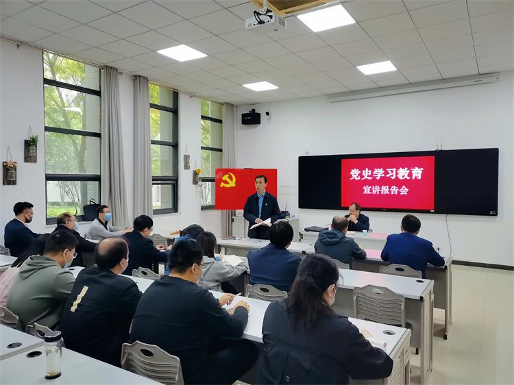 报告会上,赵建光书记紧紧围绕党史学习教育,全面回顾中国共产党百年奋斗历程,概括梳理取得的辉煌成就,总结提炼宝贵的经验启示,作了一场系统深入、生动鲜活的报告。赵书记以一例例鲜活的事例、严谨的史实深刻阐述了开展党史学习教育的重要意义、党史学习教育的主要内容以及如何开展好党史学习教育,并提出,广大教工要学好党史著作和英雄故事,将党史学习教育科学性、艺术性地融入学生课堂,引导广大青年学生从党的历史中汲取奋进力量。他强调,“党史是共产党人的灵魂根脉和精神家园,大家要紧密联系工作实际,切实把党史学习成效转化为立德树人的实际行动,做到学党史、悟思想、办实事、开新局,奋力走好学院职教本科建设路。”赵书记的报告既有理论的深刻阐释,又有自身的独到见解,整场报告内容详实、分析深刻、亮点纷呈,赢得了在场教工的热烈掌声。