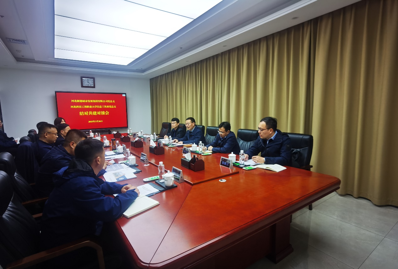 为深入贯彻落实党的二十大精神,深化校企合作内涵,推动党建与业务深度融合,2025 年 3 月 26 日,信息工程系党总支与河北顺德城市发展集团有限公司党总支在城发集团会议室举行结对共建对接会。双方将以党建为引领,围绕人才培养、实习实训、技术创新、志愿服务等领域开展全方位合作,共同探索校企协同育人新模式。