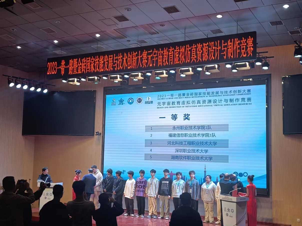 2023年12月9日,由金砖国家工商理事会中方理事会、一带一路暨金砖国家技能发展国际联盟、中国科协一带一路暨金砖国家技能发展与技术创新培训中心主办,中国发明协会、教育部中外人文交流中心联合主办,金砖国家工商理事会(中方)技能发展工作组承办,永州职业技术学院联合承办,深圳未来立体教育科技有限公司、北京嘉克新兴科技有限公司提供技术支持的2023年度一带一路暨金砖国家技能发展与技术创新大赛“元宇宙教育虚拟仿真资源设计与制作”赛项全国总决赛在永州职业技术学院举办。