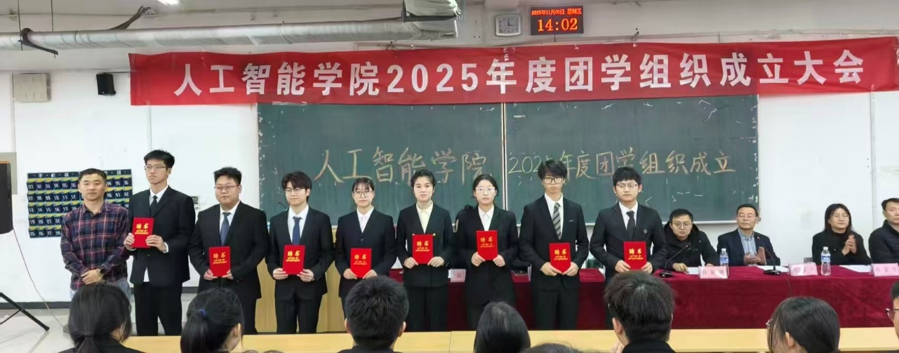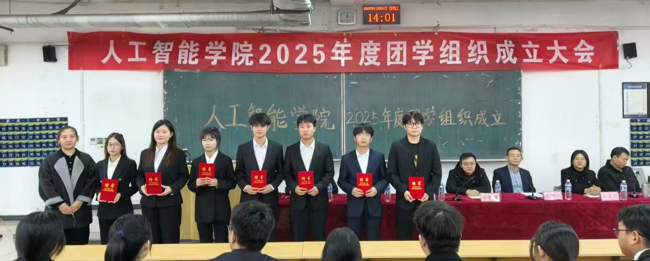 为优化人工智能学院团学组织的结构,提升效率,同时为组织注入新的活力,11月5日下午我院在C2-1隆重举办了“人工智能学院2025年度团学组织成立大会”,我院党总支书记徐建平、学生科科长孙新博、学生党支部书记张玉丹及25级、24级、23级全体辅导员老师出席本次大会。第十八届团总支学生会主要成员、2025年度团学组织全体成员和25级班委参加了会议。会议由团总支书记高珊主持。