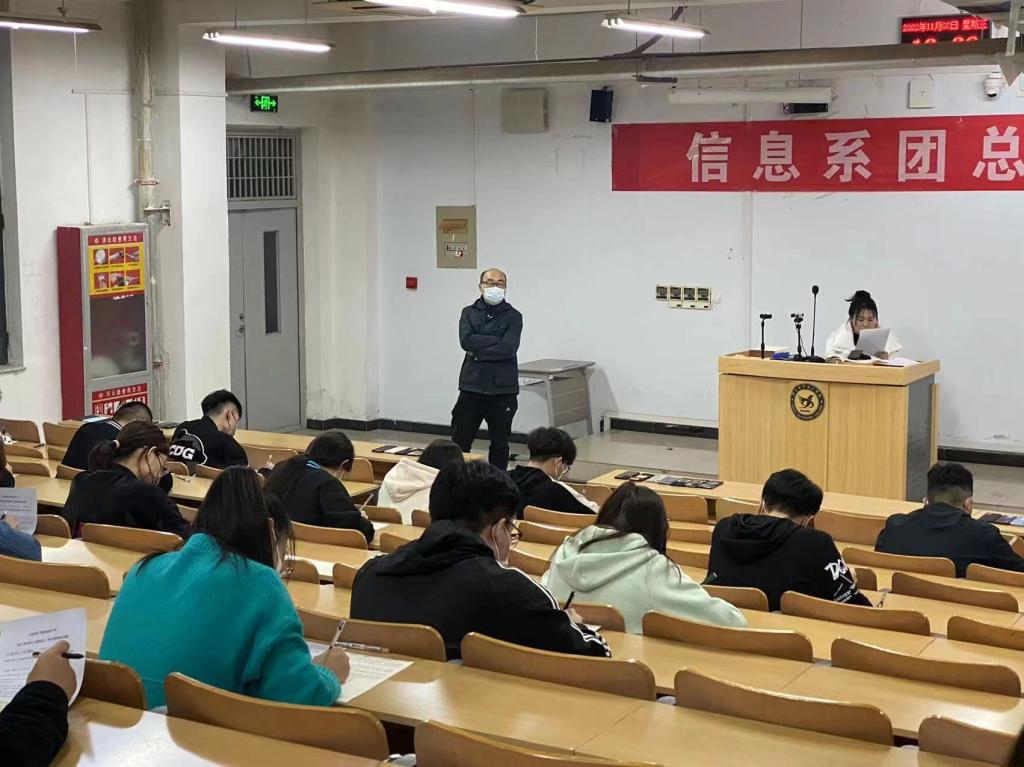 11月2日,我系团总支学生会换届笔试日在C区3-1阶梯教室举行,笔试由辅导员高珊老师和第十五届团总支学生会负责人代表监考。笔试从不同角度考察了同学们的政治理论素养、对所竞选职位的展望以及具体工作处理能力和逻辑思考能力。同学们个个认真答题,奋笔疾书;工作人员巡视监考,保证考场纪律严明。在同学们的配合下,笔试工作顺利完成。11月8日,我系结合面试成绩、笔试成绩和候选人民主测评情况综合考量确定了新一届团学各部门负责人名单。