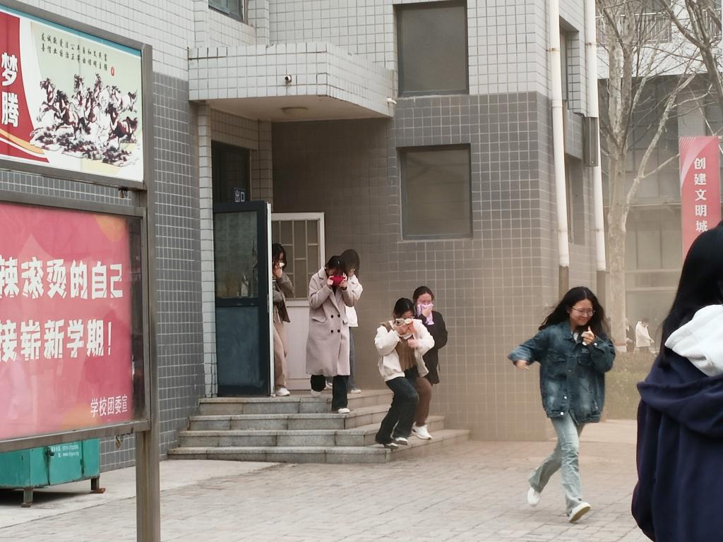 当天下午15:00,警笛响彻云霄,烟雾弹喷出一股股浓烟,同学们在各层负责人的指挥下迅速、有序逃离,各层负责人相互配合、合理指挥,防止学生在紧急疏散时出现相互推挤现象。同学们弯腰、捂口鼻、低姿快跑,按照预定的疏散预案路线,迅速有序地撤离到疏散集合点。整个实战演习活动紧张有序,达到了预期目的。演练结束后,保卫处向同学们介绍了灭火器的正确使用方法和操作步骤,对演练中存在的问题进行了总结和反思,并强调了一般性火灾的施救措施。
