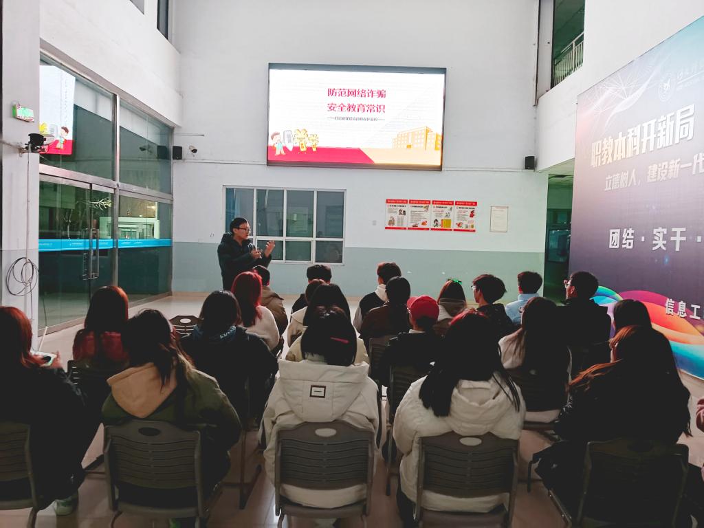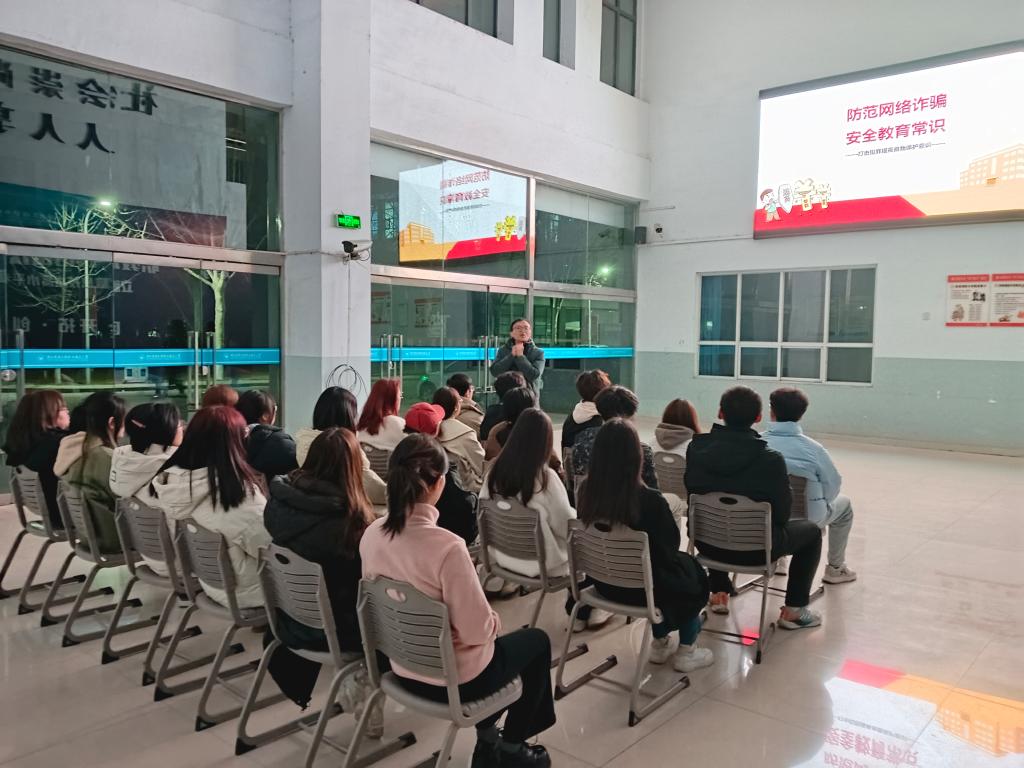 孙老师结合典型案例,介绍了近年来大学生群体发案较高的电信网络诈骗类型。随后,同学们集中观看了反诈影片,影片涵盖了多种诈骗手法,通过真实案例展现了诈骗犯罪的恶劣行径,让大家深刻认识到诈骗犯罪的危害性。孙老师为大家解读影片中的关键信息,指出诈骗犯罪的手法、特点和防范要点,并提醒大家牢记“不听、不信、不转账”,切实守好“钱袋子”。