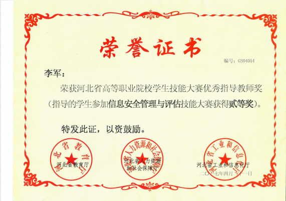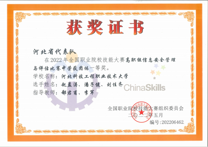 自参与河北省职业院校技能大赛以来,工作室成绩斐然。在信息安全管理与评估赛项中,斩获省赛个人一等奖 6 项、团体一等奖 3 项、二等奖 4 项、三等奖 3 项;在国赛中,荣获一等奖 1 项、二等奖 2 项、三等奖 1 项;在世界职业院校技能大赛争夺赛中,勇夺银奖。这些优异成绩充分彰显了专业在人才培养方面的卓越成效,也为学生未来的职业发展奠定了坚实基础。