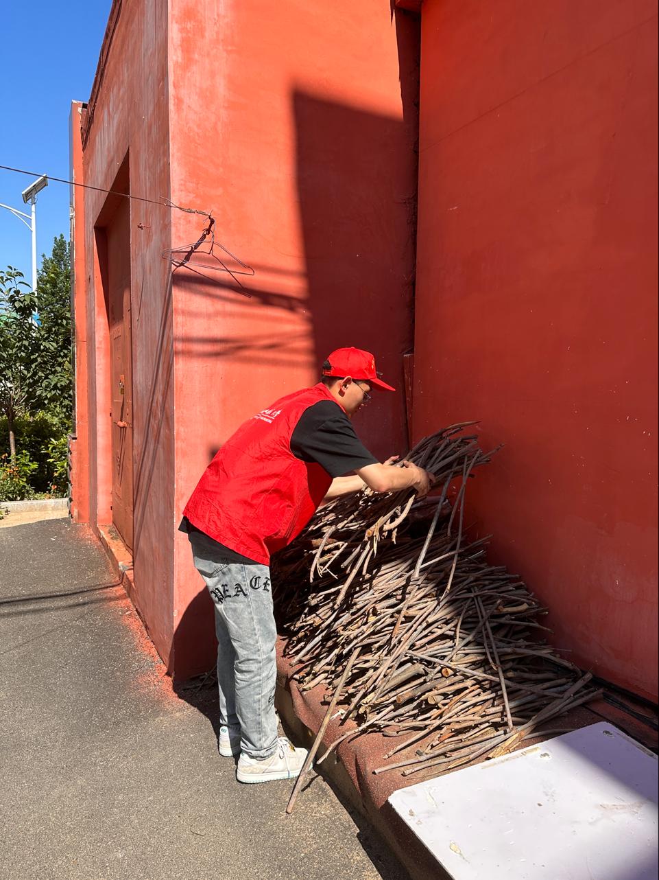 6月13日上午,炎炎夏日,实践部带领青年志愿者坐公交来到团结苑社区,并开展打扫卫生活动。