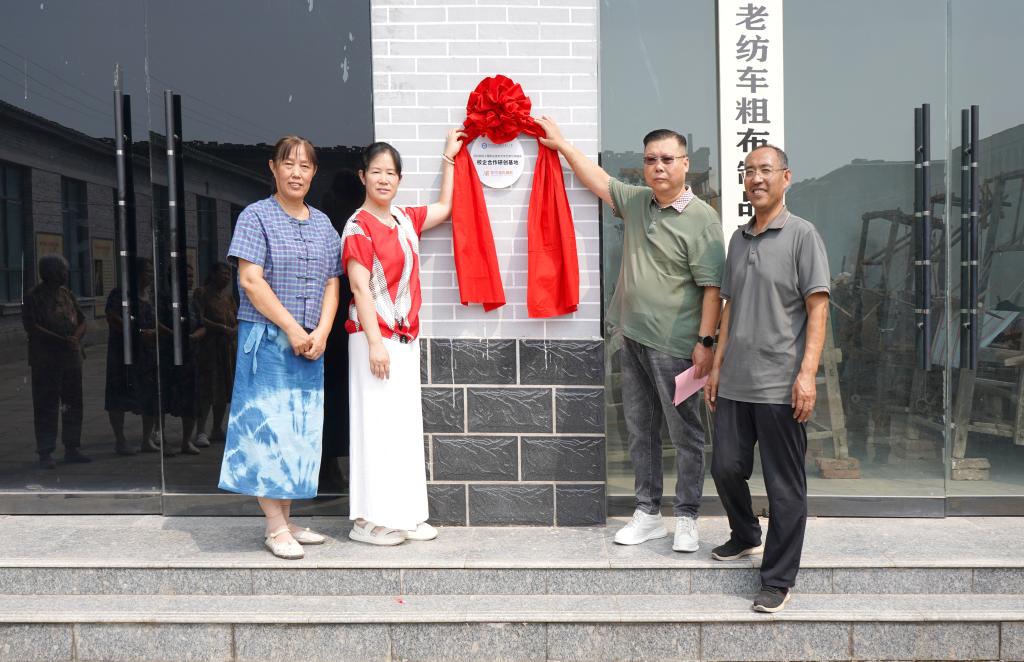 董庆国表示,校企合作是新形势下企业发展进步的内在要求和实现双赢的战略举措,既是当务之急,又是长远大计。在以后的合作中,希望老纺车粗布制品有限公司积极主动加强与学校的沟通交流,通过校企合作研创基地这个平台,让威县土布纺织技艺更好地传承发展。杨志红希望通过此次合作,增强与企业的合作,真正实现校企的深度融合,创造出丰硕的成果。最后,杨志红与董庆国共同为基地揭牌。