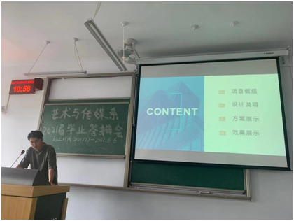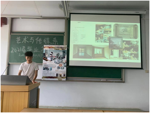 答辩现场秩序有然,气氛活跃,同学们准备充分、汇报流畅。答辩学生通过客户调研、问卷采访、创意设计等思路,结合运用ppt讲解、展板展示、现场表演等形式,自信且沉着展示个人毕业设计成果,从市场需求出发,有针对性地提出自己的研究创意。