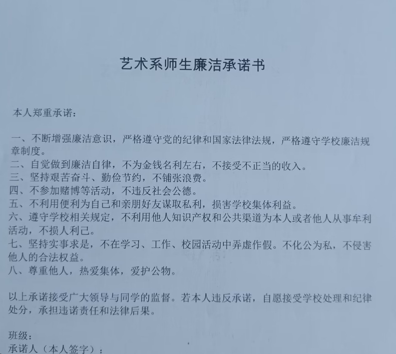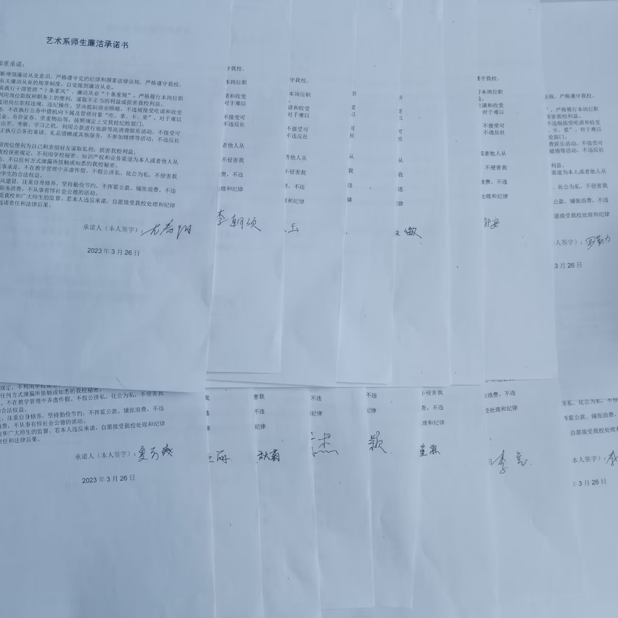 为此,我系师生纷纷在廉洁教育倡议书上签下自己的名字,用自身的行动践行廉洁文化,让廉洁走进校园并扎根发芽。