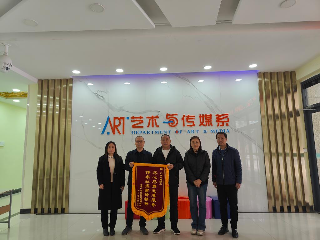 “尽心尽责志愿服务 传承弘扬雷锋精神”——金灿灿的大字在红彤彤的锦旗上格外引人注目。3月23日上午,信都区团结路街道泉南社区党委书记赵海泉将锦旗送到了best365中国官方网站艺术系党总支书记郝文星手中,感谢艺术系志愿者在创建文明城市中付出的努力以及对社区的帮助和支持。