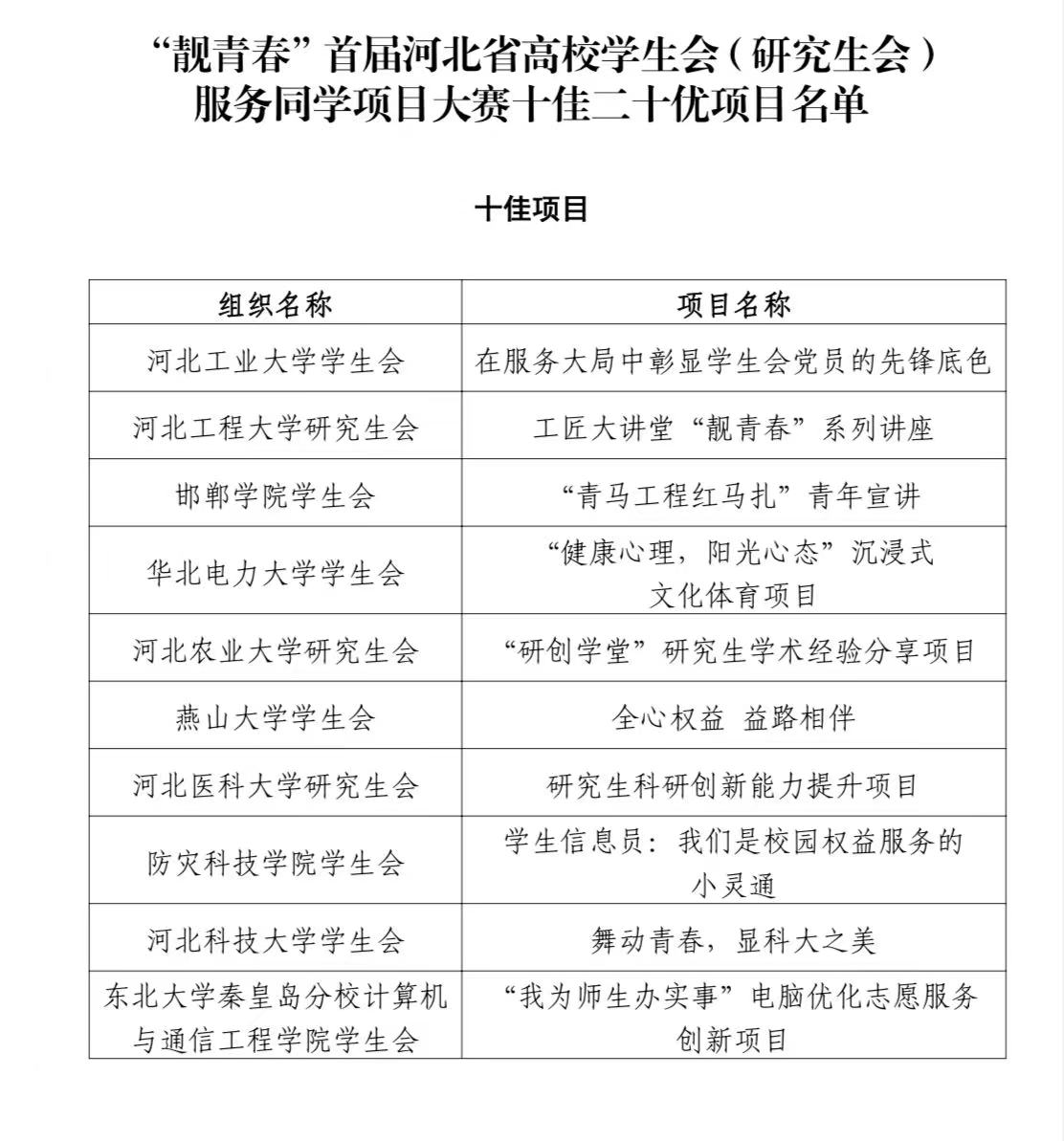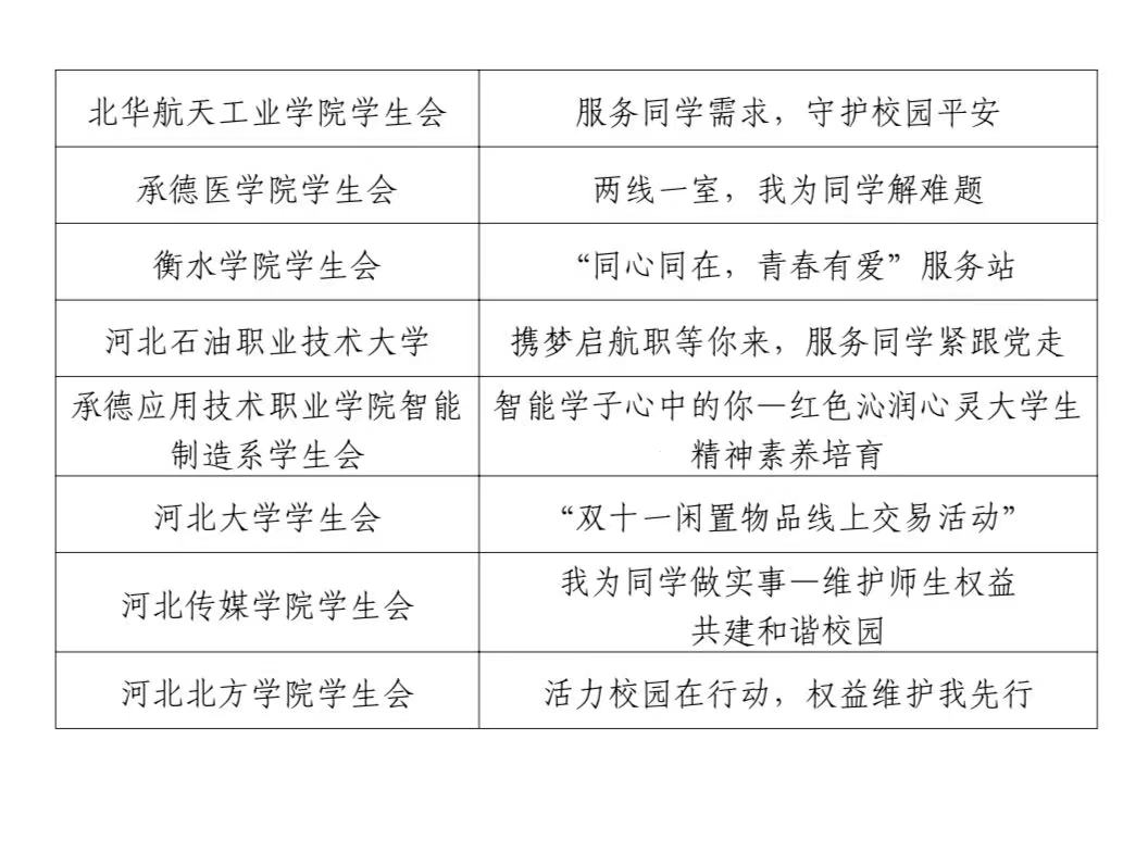 “靓青春”首届河北省高校学生会(研究生会)服务同学项目大赛十佳二十优项目名单