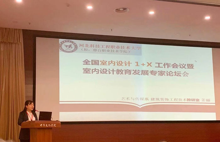 2021年4月24日,为贯彻落实《中华人民共和国国民经济和社会发展第十四个五年规划和 2035 年远景目标纲要》要求,深化推进“1+X 室内设计职业技能等级证书”试点和“全国室内装饰设计职业技能竞赛”等相关工作,增强设计教育适应性,推动行业高质量发展,在教育部职业院校艺术设计类专业教学指导委员会的大力支持下,中国室内装饰协会在中央社会主义学院隆重召开“全国室内设计 1+X 工作会议暨室内设计教育发展专家论坛”。 best365艺术与传媒系建装教研室姜丽老师作为特邀“设计教育专家库”入库专家参加会议,同行还有室内设计课程的郭安老师,此次会议共有全国30个省300多所本科、职业院校领导和教师参加会议。