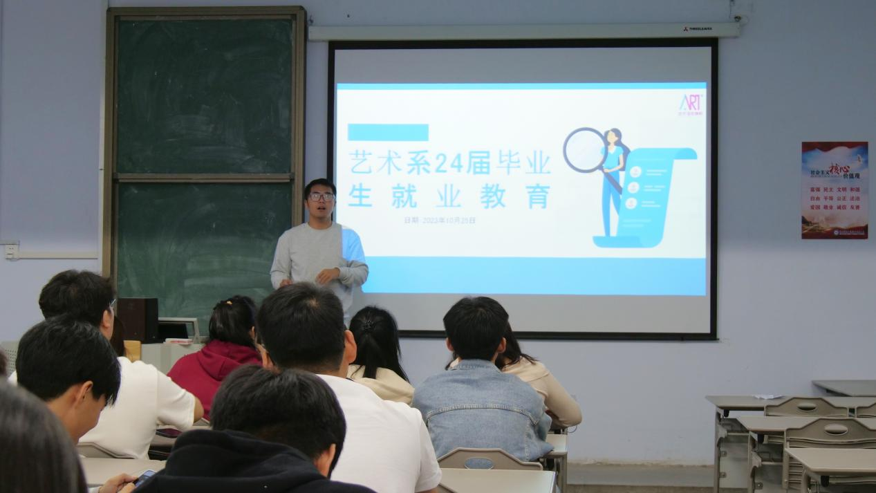 为了让毕业生对就业有更全面的认识,树立正确的就业意识,保障学生高质量就业。10月25日上午,在一教201开展毕业生就业教育主题班会,班会由李朝硕老师主持,21级建筑装饰工程技术专业全体学生参与,主题是“如何选择自己的就业方向”。