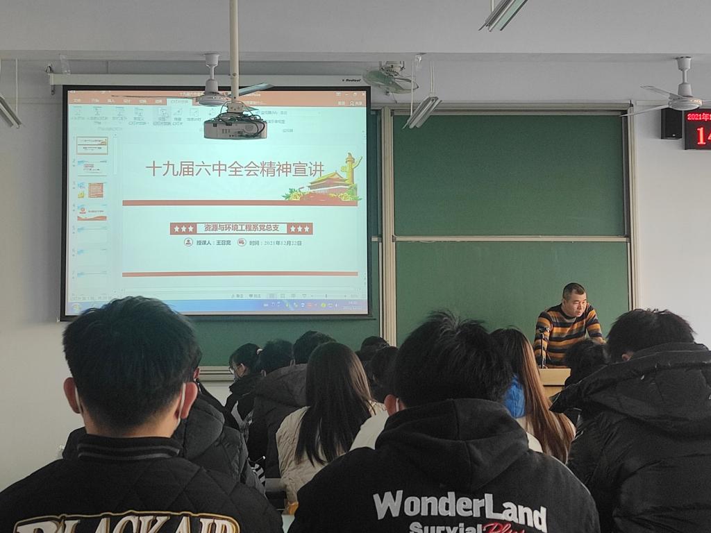 为深入开展党史学习教育,贯彻落实好“学党史,悟思想”的工作要求,12月22日下午2:30,我系于二教301开展“学习贯彻党的十九届六中全会精神”专题党课,党课由系党总支副书记王召宽主讲,20级、21级部分学生干部参加学习。
