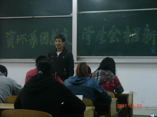 为了更好的实现资源与环境工程系学生的自我教育、自我管理、自我服务,奉献校园,服务同学,2011年10月21日-23日,资源与环境工程系团总支、学生会招新工作在二教107教室拉开帷幕,参加本次招新工作的有资源与环境工程系团总支书记武立博老师、2010级团总支、学生会干部以及参加竞选的2011级学生。