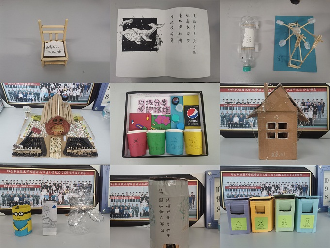 通过开展“践行绿色生活”主题班会,向同学们讲解废旧物再利用、垃圾分类等相关环保知识,让同学们秉承“认识环保、变废为宝、开拓思维、追求个性、展示自我”的理念,倡导同学们做文明环保人,增强学生“爱我学校,美我学校”的环保意识,为环保问题出谋献策。用征集环保纸箱、变废为宝的方式,让同学们对废弃的物品再利用,同学们踊跃参与,发挥想象,制作了一些有关环保主题的作品,如垃圾分类桶、精品小屋、纸抽盒、展览品、生活用品等。