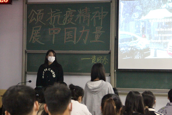 活动伊始,组织部负责人薛雨欣讲述了本次活动开展的意义。随后播放抗疫电影《中国医生》,电影讲述在疫情面前中国医生的大无畏精神及舍己为人的英雄气概,同学们聚精会神,透彻了解角色,感同身受,为之动容。电影结束后,同学们以热烈的掌声向疫情工作者致敬,表述自己对抗击疫情英勇无私的医生们的敬畏,隔着屏幕感受到的责任、温暖与万众一心的气概。最后,同学们积极发言,表示应担起我们青年人所应该担起的担子,与千万个我们、他们共度难关。
