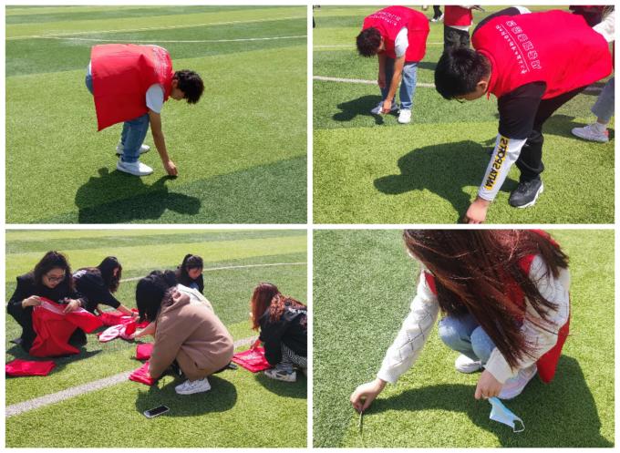 4月16日,志愿者们在操场入口集合完毕后,按照各自分配区域进行打扫。活动过程中,志愿者们带着一次性手套,将草坪上的食品包装袋、牛奶盒、饮料瓶、烟蒂、纸屑等垃圾一一捡起全部放进准备好的环保袋中带走。同学们不怕脏、不怕累,专心致志地捡拾垃圾,不放过任何一处卫生死角,在同学们的辛勤劳动下,操场变得更加整洁。