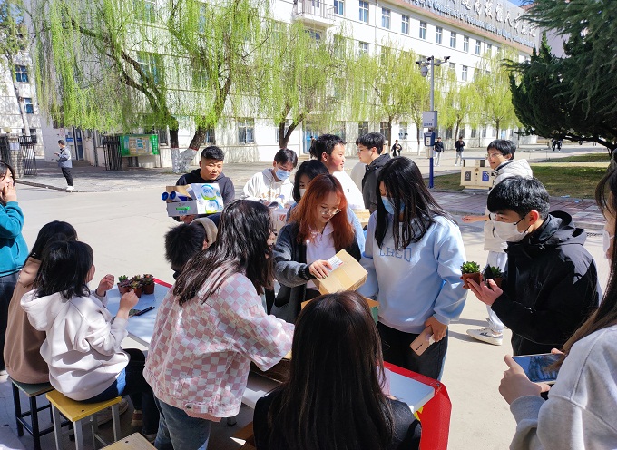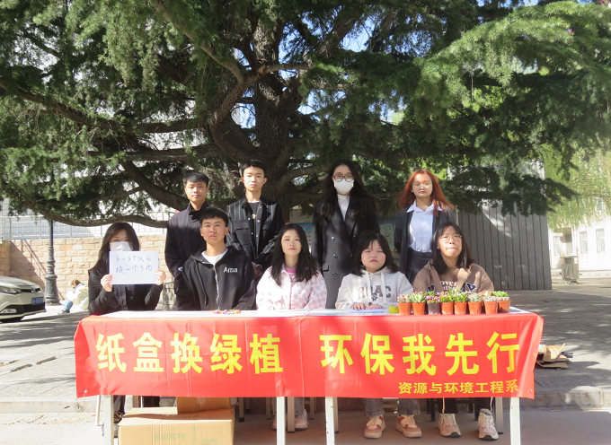 2023年3月12日,我系团总支学生会组织部在红星礼堂前开展了“纸盒换绿植”的活动。