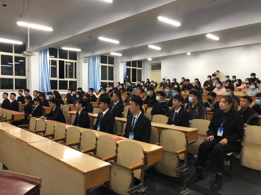 晚上7:30,大会开始。郝老师宣读了第三十二届团总支学生会学生干部名单并由赵主任、王书记、奚老师为他们一一颁发聘书并合影留念。随后第三十一届学生会主席王舰洋发言,对第三十一届学生会的工作进行了汇报以及对第三十二届学生会成员的期望。接下来是我系第三十二届学生会主席宁学宇的发言,他提出了学生会各部门成员的工作设想以及工作计划。系党总支副书记王召宽进行讲话,针对生活、学习各方面对同学们做出了指导,要求学生干部注重提高自己的整体素质,以饱满的精神状态积极投入到工作中。最后,系主任兼党总支书记赵建国总结发言,在我系学生会的工作当中对新一届的学生干部提出了新的要求,坚持改革创新,为我系做出更大的贡献。
