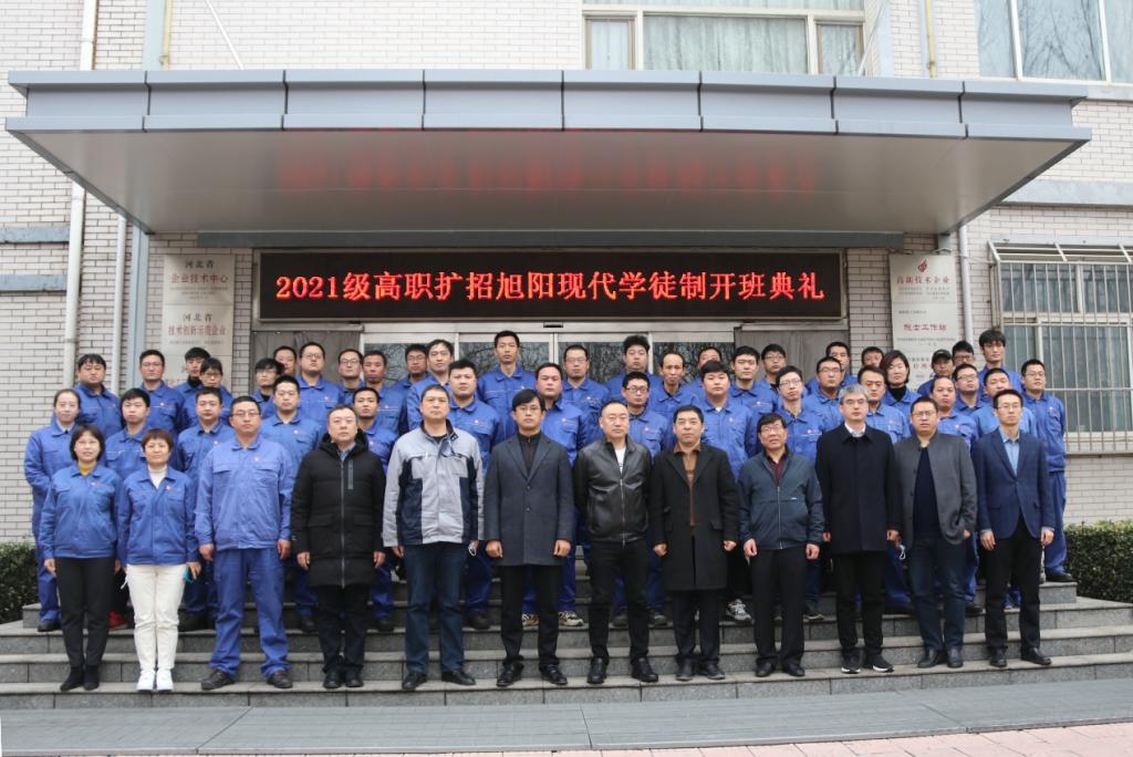 3月2日上午9点,在旭阳集团邢台园区报告厅隆重举行我院高职扩招现代学徒制旭阳班开班典礼。学院副院长(旭阳现代学徒制学院联席院长)李贤彬、旭阳集团邢台园区总经理(旭阳现代学徒制学院联席院长)郎莹、资源与环境工程系主任(旭阳现代学徒制学院执行院长)赵建国、教务处处长王学东、招生就业处处长魏勇、旭阳集团邢台园区人力资源部经理孟宪萍、资源与环境工程系副主任程永高、河北中煤旭阳能源有限公司总经理助理李浩伟、河北金牛旭阳化工有限公司生产部副经理马春雁等校企双方领导以及四十余名企业职工、学员参加仪式。