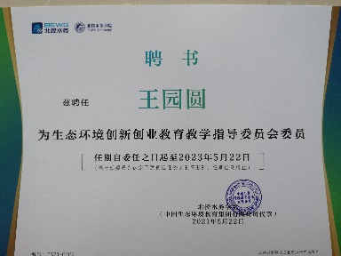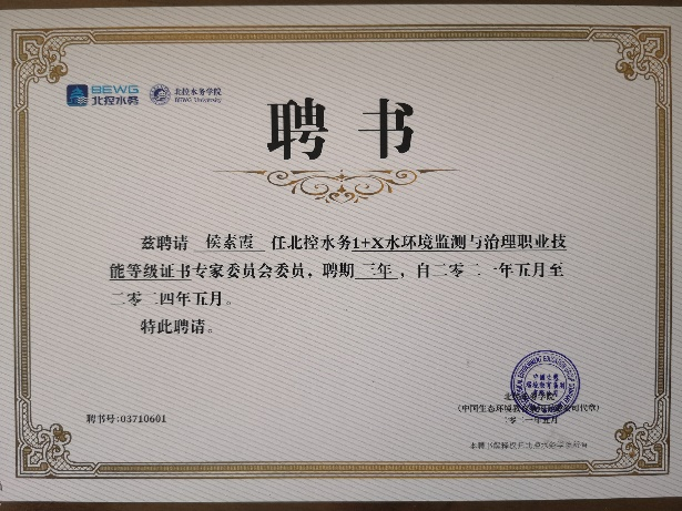 我系程永高和侯素霞两位教师被聘请为北控水务1+X水环境监测与治理职业技能等级证书专家委员会委员。同时,邓宏颖、郭京豪和王园圆三位教师被聘为生态环境创新创业教育教学指导委员会委员。