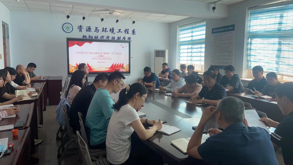 根据《中共best365中国官方网站委员会关于开展党纪学习教育的工作方案》,5月22日下午,资环系党总支于会议室召开全体党员大会,深入学习《中国共产党纪律处分条例》,并围绕新修订的《条例》进行了研讨交流。
