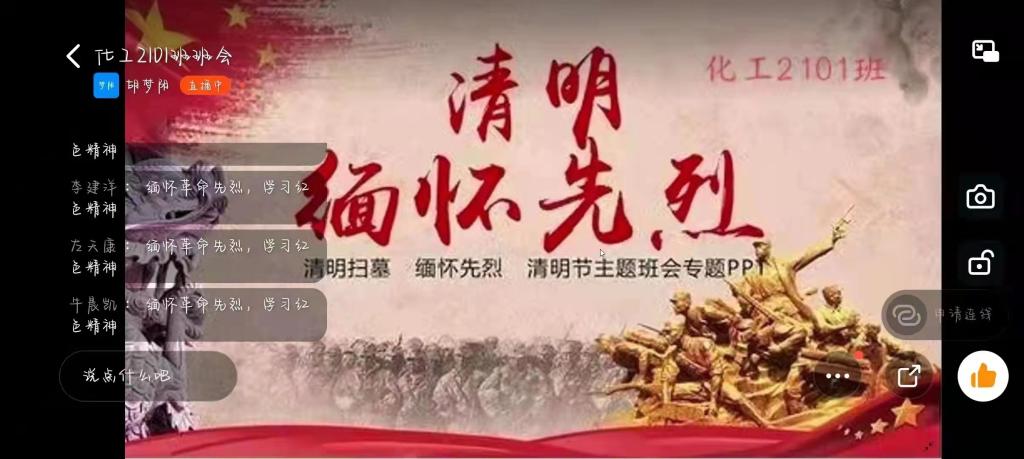 清明云祭祀,共同战疫情。4月2日,我系各班级开展了“鲜花祭先烈,英魂永长存”主题班会,并进行云上祭祀活动。