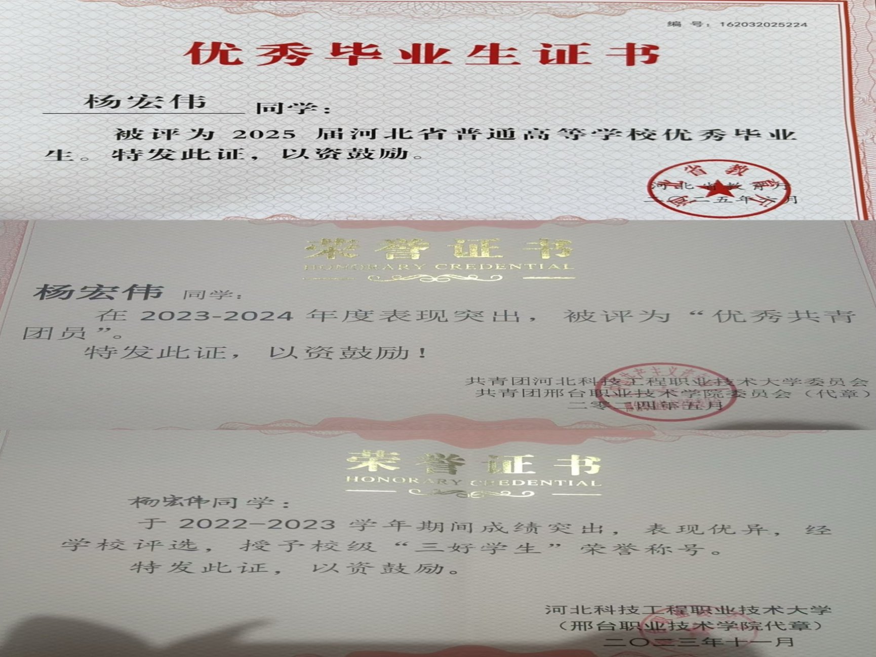 通过三年系统化、个性化帮扶,杨宏伟同学在学业、职业与个人成长方面均取得显著进步: