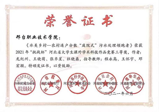 学生参加各类技能大赛、“互联网+”大学生创新创业大赛、“挑战杯”大学生创业计划竞赛省、河北省中华职业教育创新创业大赛、全国青年科普创新实验暨作品大赛等,获奖50余项,职业技能和创新能力显著提高。